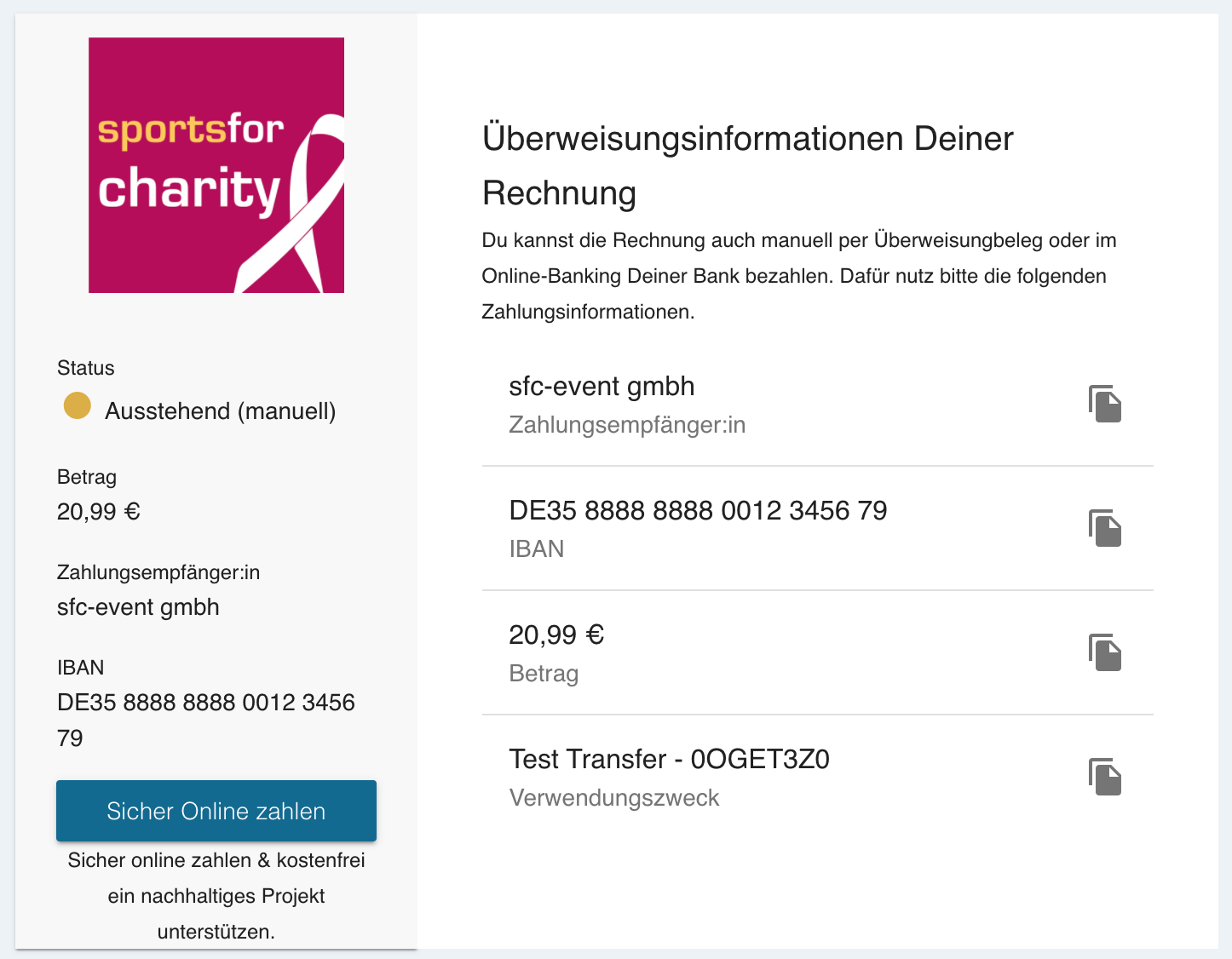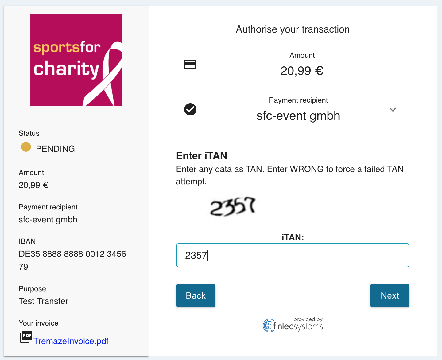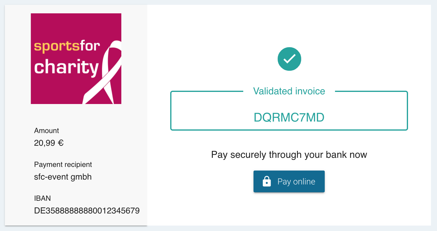 After you authenticated, you are presented with more information about the payment such as the creditor's information. You can also download the invoice.