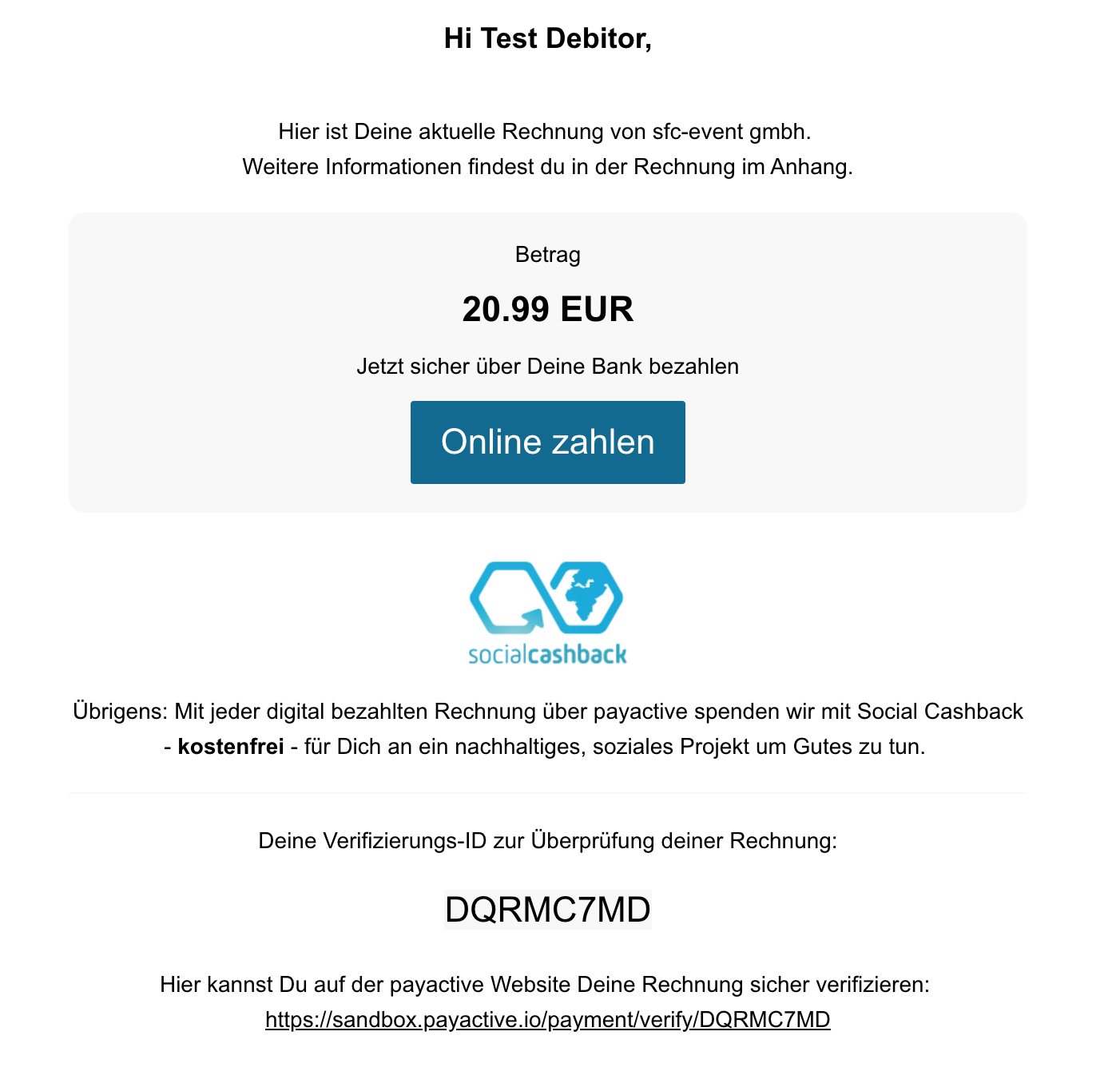 The debitor enters the payment flow either through verification (previous section) or directly from the EMail.