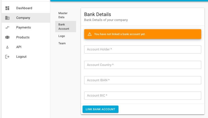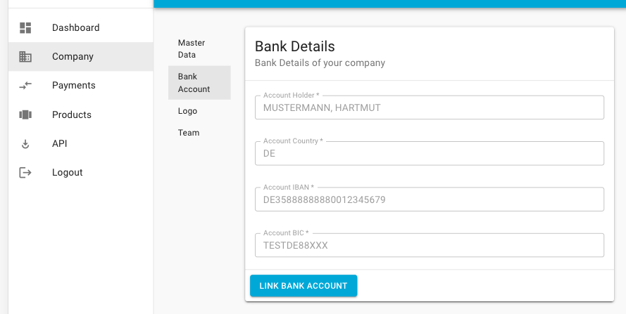 1. Click on "Link Bank Account". Follow the instructions. During the process you will be asked to authenticate your bank account and to provide a 2nd factor authentication (such as smsTan, mTan, etc.).